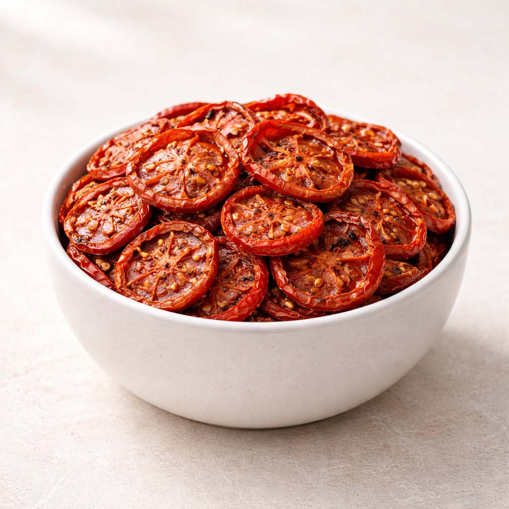 Tomatoes deliver a bold umami flavor balanced with gentle sweetness and natural acidity. Sun-dried to concentrate their taste, they offer a rich, savory depth that elevates both snacks and dishes. Perfect for salads, pasta, or gourmet blends, these tomatoes bring warmth, intensity, and Mediterranean character to every bite.